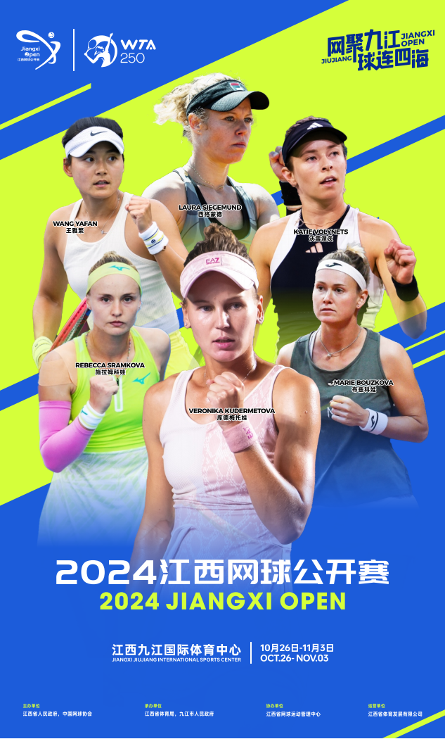 Language(語言切換)江西網(wǎng)球公開賽是江西省人民政府主辦,江西省體育局、中國網(wǎng)球協(xié)會、南昌市人民政府聯(lián)合承辦的國際女子職業(yè)網(wǎng)球協(xié)會(WTA)旗下國際巡回賽(WTA International Event)